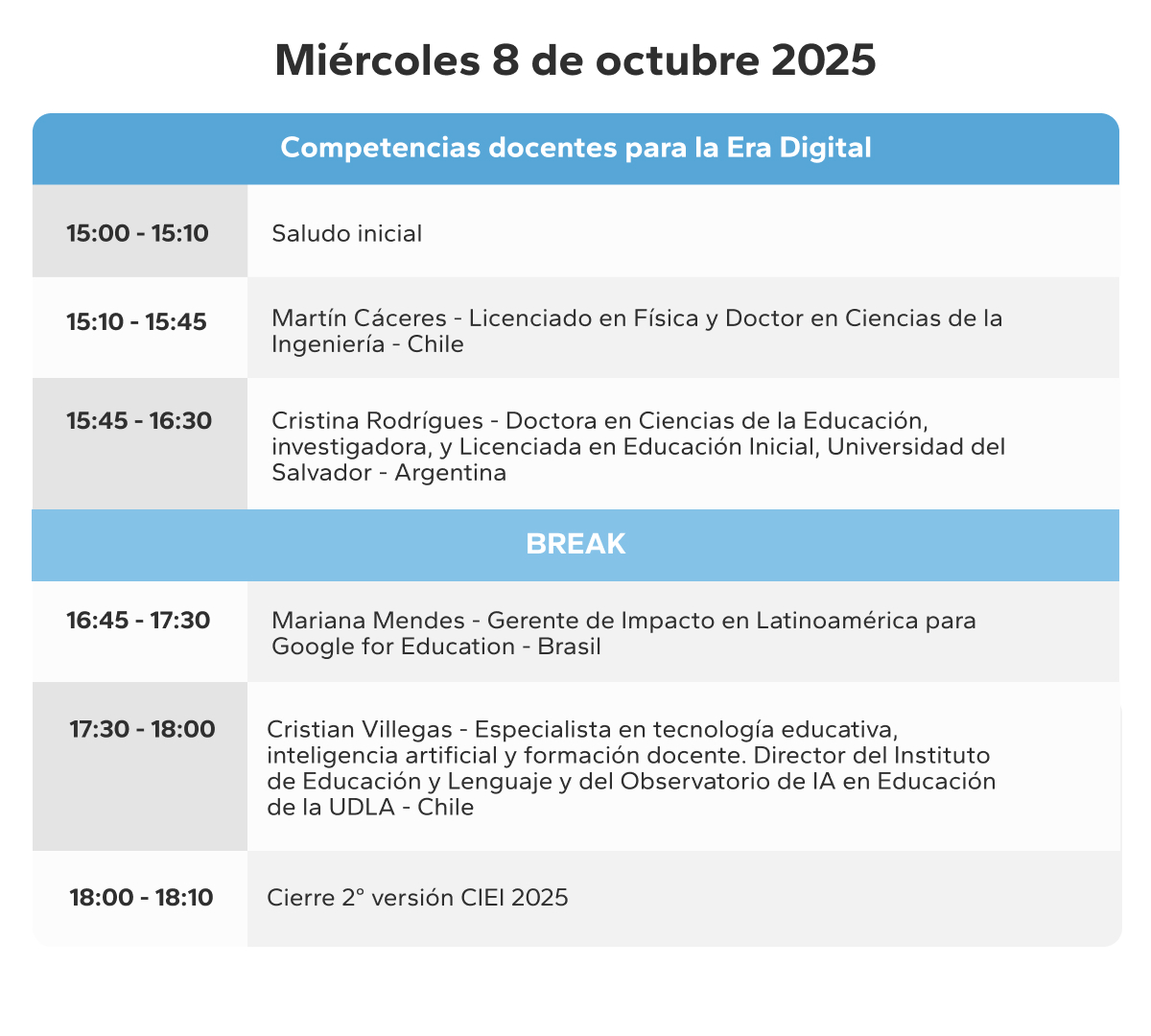 Prepárate para vivir una experiencia transformadora, con charlas inspiradoras, buenas prácticas reales y contenidos diseñados para fortalecer tu labor pedagógica y enfrentar los desafíos del presente con visión de futuro.